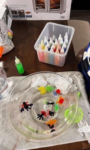 Es war so eine lustige Aktivität mit meiner Nichte (9 Jahre alt) und meinem Neffen (4 Jahre alt). Es war leicht für sie, es selbst zu tun, und sie fanden es so cool. Die Dinosauriereier und die Wasserperlen waren ausgezeichnete Extras und die Plastikkoffer funktionierte sehr gut, um kleine Kreaturen zu machen. Gehen Sie sicher, wenn Sie Kinder haben, die Handwerk oder Erfahrungen lieben.