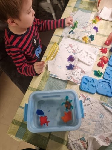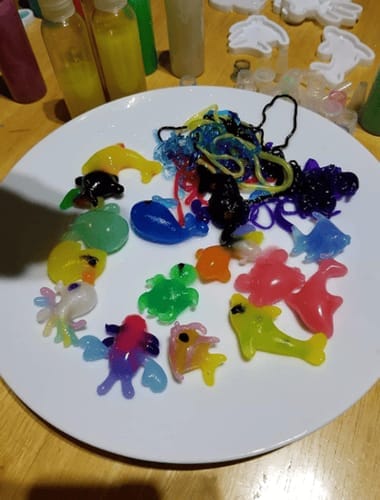 Meine 9 -jährige Tochter liebt es! Wirklich einfach zu tun. Ein Teil der Farbflüssigkeit bleibt sehr viskoös und bildet sich manchmal nicht. Wirklich lustig.
